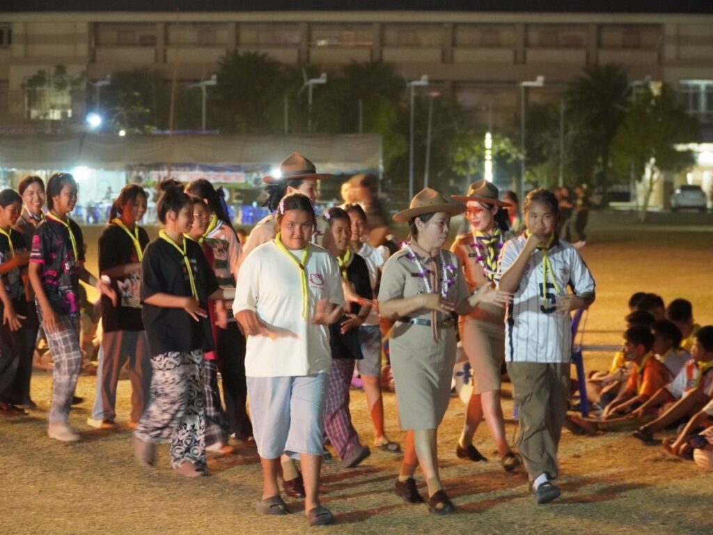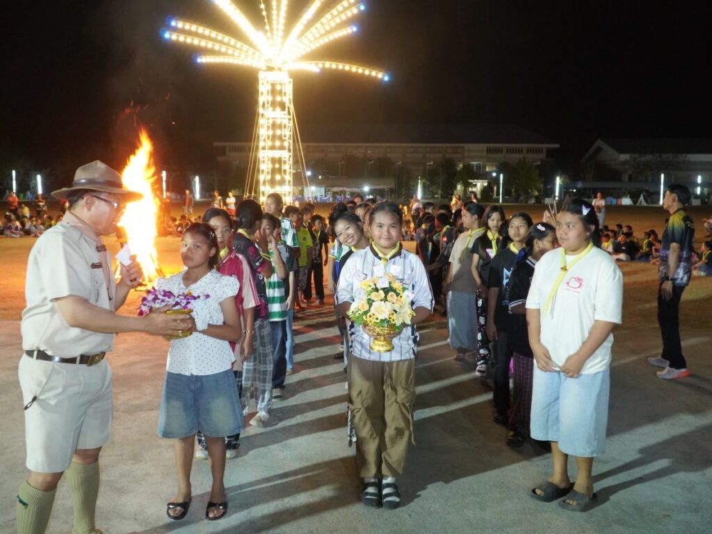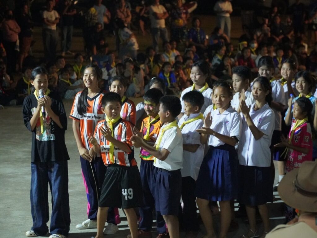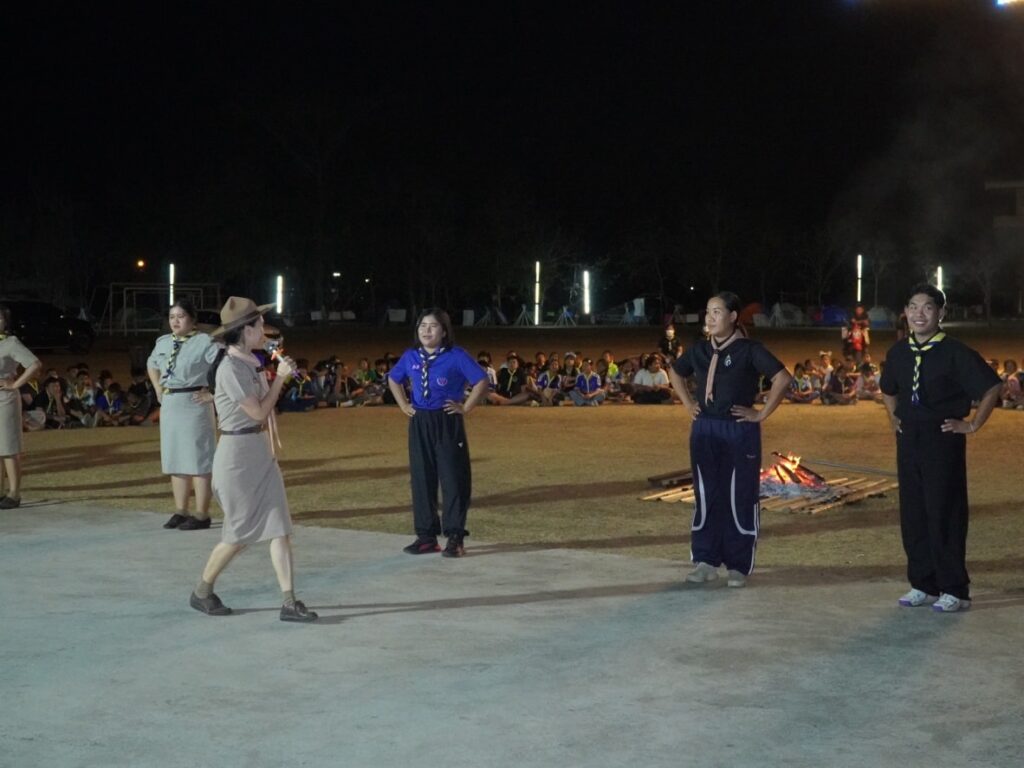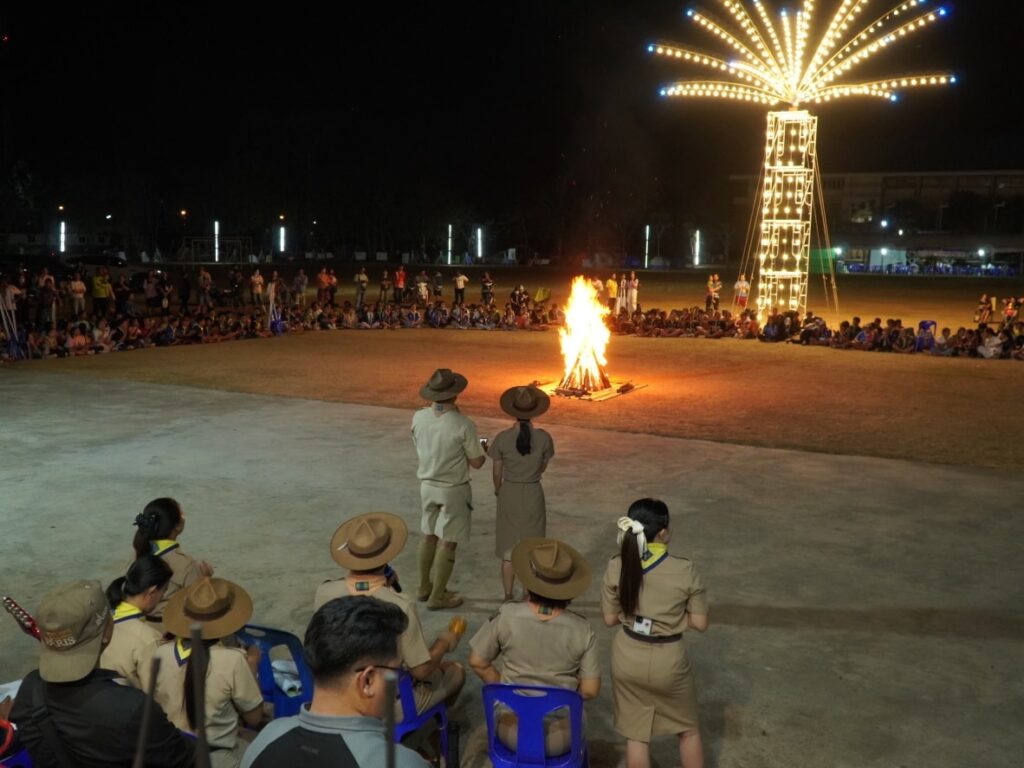 กิจกรรมคืนรอบกองไฟ การนันทนาการ การแสดงละครจากคณะวิทยากร และการแสดงละครของลูกเสือ-เนตรนารี ในโครงการอยู่ค่ายพักแรมลูกเสือ – เนตรนารี ประจำปีการศึกษา 2568