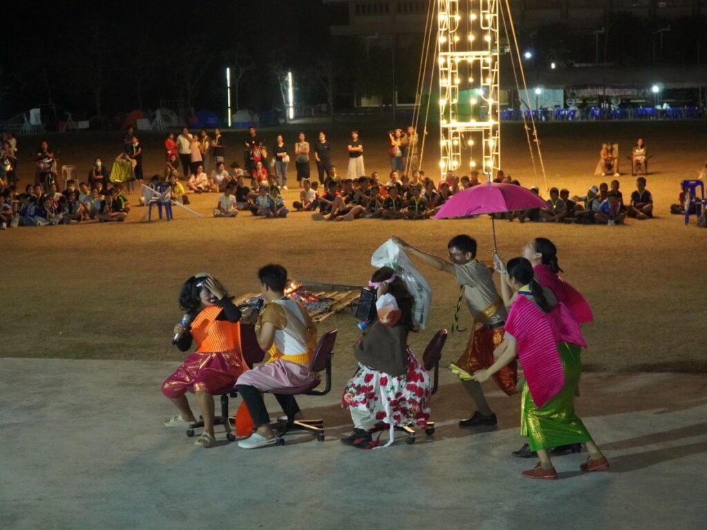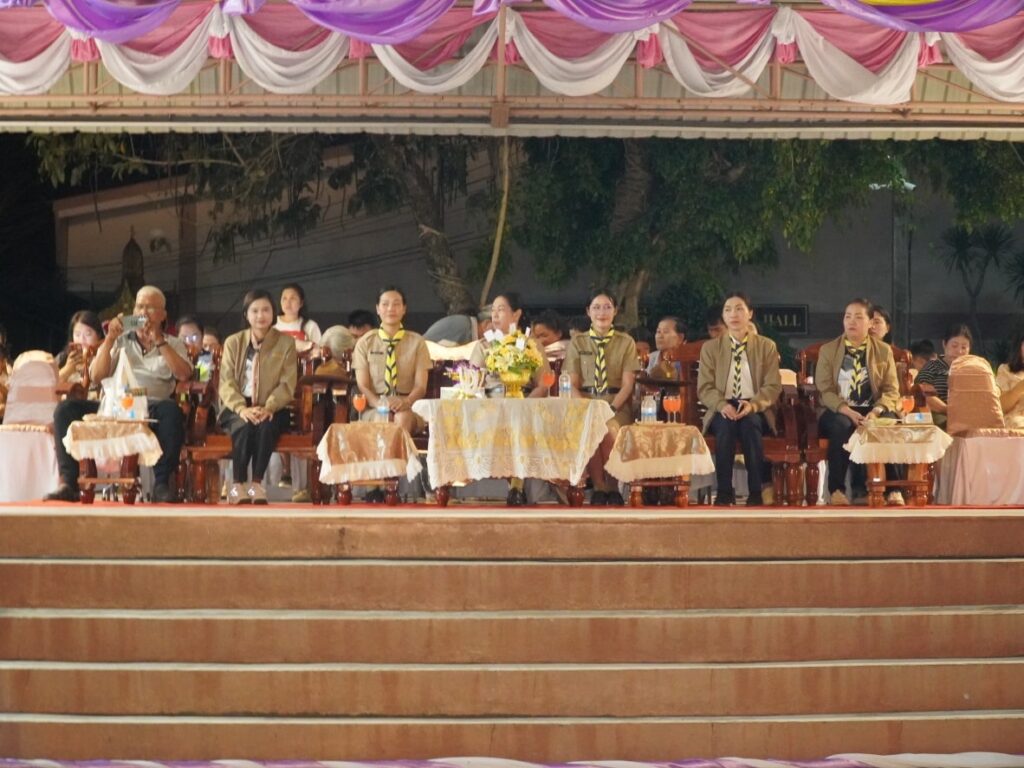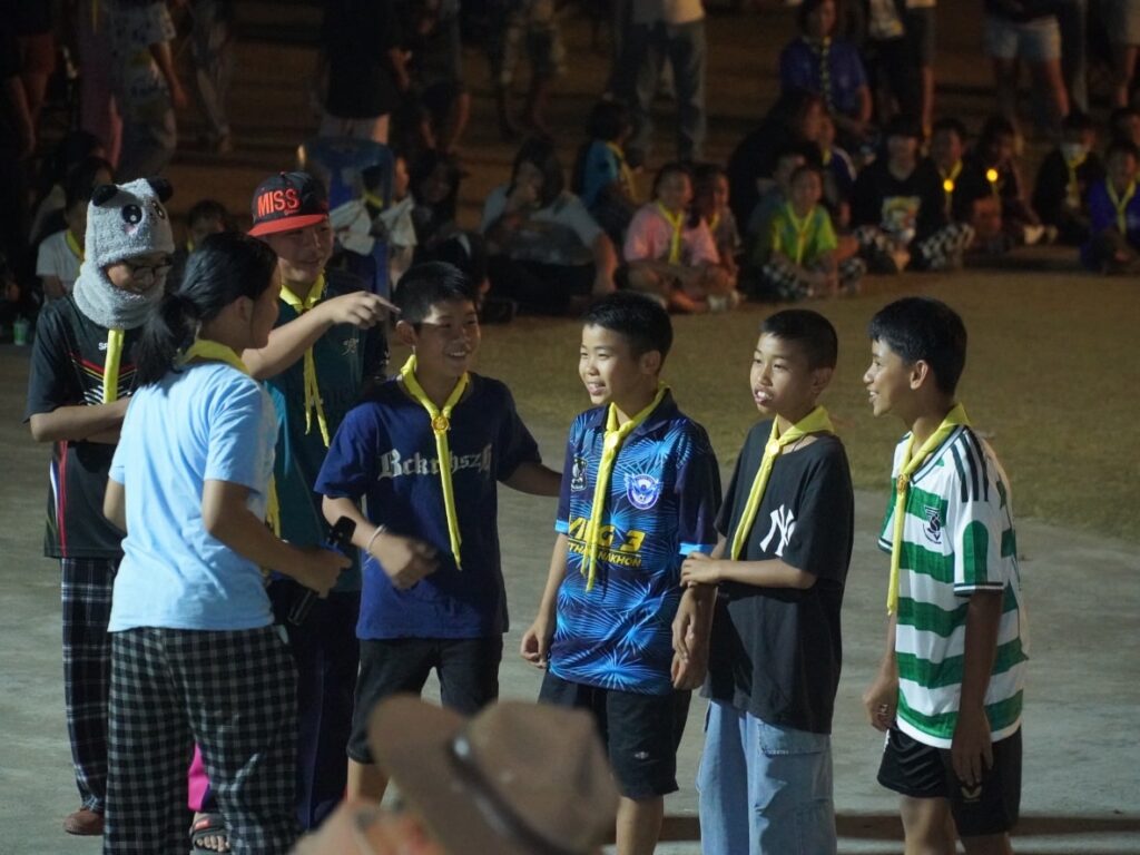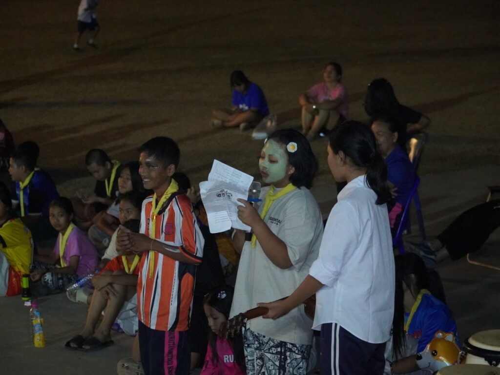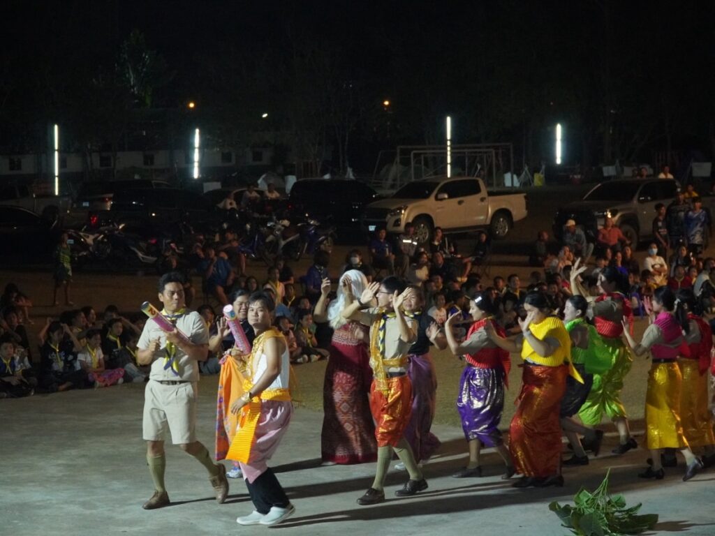 กิจกรรมคืนรอบกองไฟ การนันทนาการ การแสดงละครจากคณะวิทยากร และการแสดงละครของลูกเสือ-เนตรนารี ในโครงการอยู่ค่ายพักแรมลูกเสือ – เนตรนารี ประจำปีการศึกษา 2568