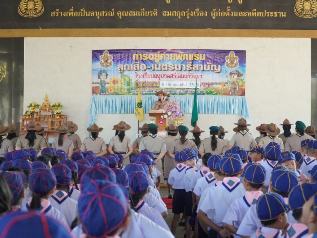 วันที่ 5 กุมภาพันธ์ พ.ศ. 2569 โรงเรียนอนุบาลศรีวัฒนาวิทยา สำนักงานเขตพื้นที่การศึกษาประถมศึกษาสระแก้ว เขต 2 ได้จัดกิจกรรมเข้าค่ายพักแรม ลูกเสือ – เนตรนารี ประจำปีการศึกษา 2568 ระหว่างวันที่ 5-6 กุมภาพันธ์ พ.ศ. 2569 ณ ค่ายลูกเสือชั่วคราวโรงเรียนอนุบาลศรีวัฒนาวิทยา ซึ่งในวันที่ 5 กุมภาพันธ์ พ.ศ.2569 ได้มีกิจกรรมเปิดกองลูกเสือ ลอดซุ้มหัวเสือ เดินทางไกล และเข้าฐานผจญภัย เพื่อส่งเสริมทักษะชีวิต ความมีวินัย ความรับผิดชอบ และการเรียนรู้ผ่านประสบการณ์ตรงตามหลักการลูกเสือ นักเรียนได้เรียนรู้การแก้ปัญหาเฉพาะหน้า การทำงานร่วมกัน และการช่วยเหลือซึ่งกันและกัน อีกทั้งยังได้ฝึกความอดทน ความมีระเบียบวินัย และทักษะการใช้ชีวิตกลางแจ้งอย่างถูกต้องและปลอดภัย
