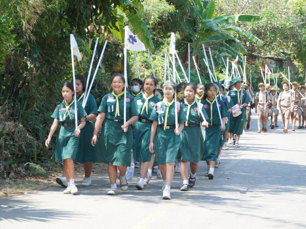 กิจกรรมเปิดกองลูกเสือ ลอดซุ้มหัวเสือ เดินทางไกล และเข้าฐานผจญภัย ในโครงการอยู่ค่ายพักแรมลูกเสือ – เนตรนารี ประจำปีการศึกษา 2568