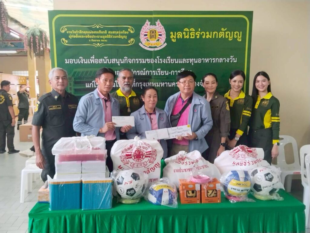 1 กันยายน 2568 นางสาวนิตยา แสนใจกล้า และคณะครู ร่วมในงานวันรำลึกถึงคุณพ่อสมเกียรติ สมสกุลรุ่งเรือง ผู้ก่อตั้งและอดีตประธานมูลนิธิร่วมกตัญญู รับมอบเงินพัฒนาสถานศึกษา ทุนการศึกษา อุปกรณ์การเรียนและอุปกรณ์กีฬา รวมกว่าห้าแสนบาท