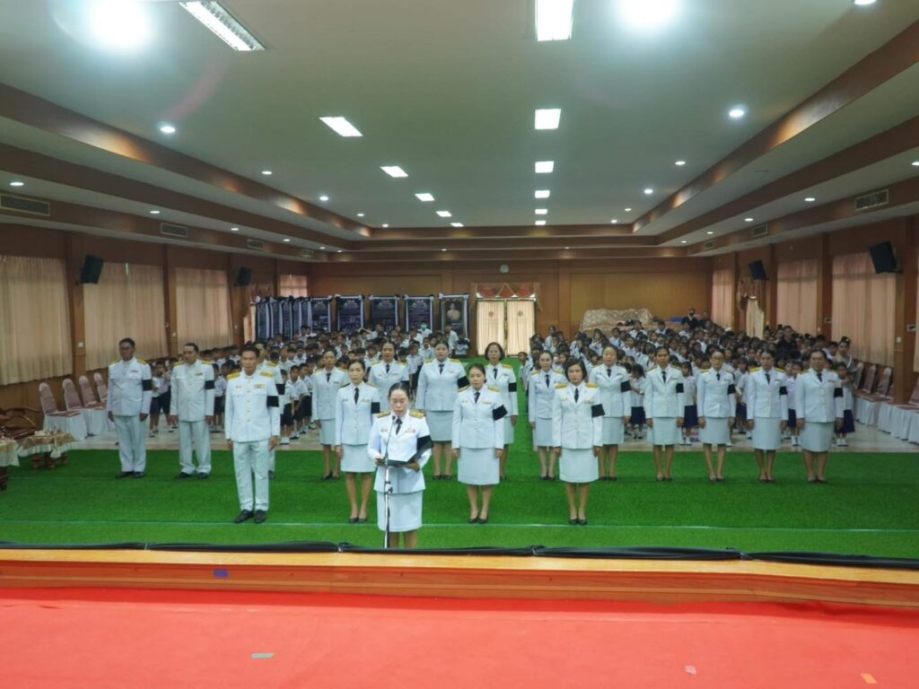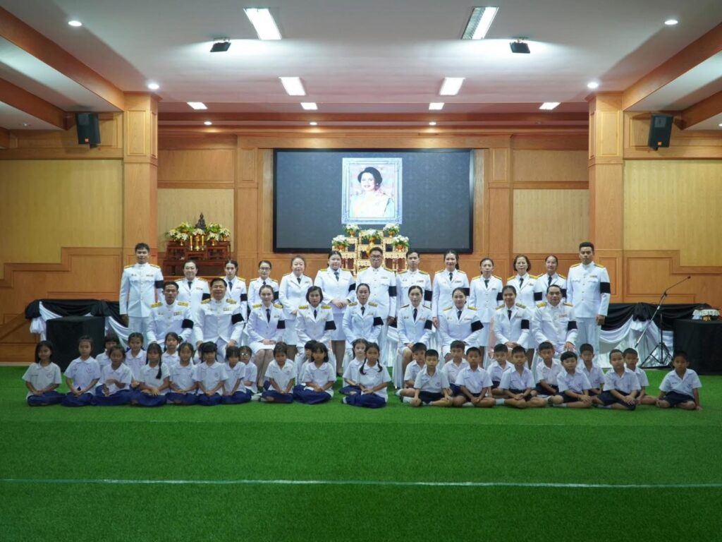 วันศุกร์ที่ 7 พฤศจิกายน 2568 เวลา 08.29 น. นางสาวนิตยา แสนใจกล้า ผู้อำนวยการโรงเรียนอนุบาลศรีวัฒนาวิทยา นำคณะผู้บริหาร คณะครู นักเรียนสายชั้นประถมศึกษาปีที่ 1-2 จำนวน 378 คน ร่วมในพิธีไว้อาลัยด้วยสำนึกในพระมหากรุณาธิคุณ สมเด็จพระนางเจ้าสิริกิติ์ พระบรมราชินีนาถ พระบรมราชชนนีพันปีหลวง พระผู้เสด็จสู่สวรรคาลัย ครบ 15 วัน (ปัณรสมวาร) โดยมีกิจกรรม ดังนี้