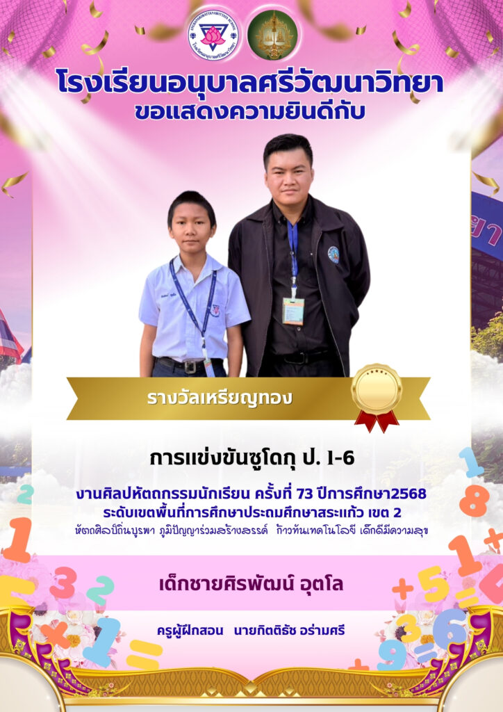 3. รางวัลเหรียญทอง การแข่งขันซูโดกุ ป.1-ป.6
