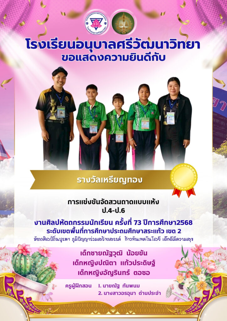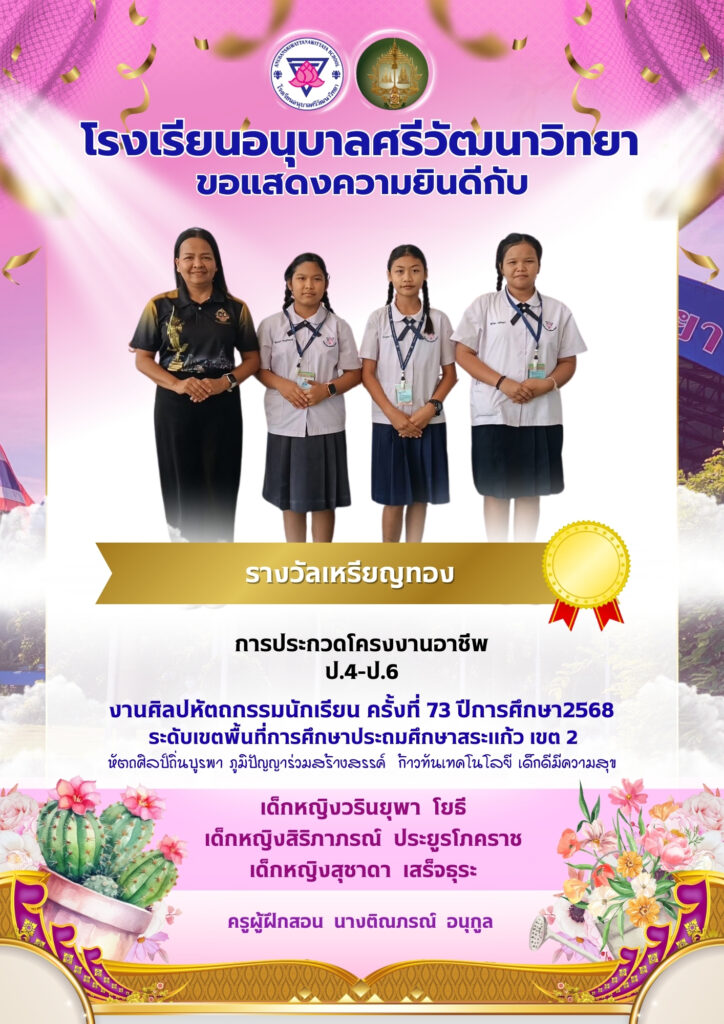 โรงเรียนอนุบาลศรีวัฒนาวิทยา ขอแสดงความยินดีกับนักเรียน และครูผู้ฝึกซ้อมกลุ่มสาระการเรียนรู้การงานอาชีพ