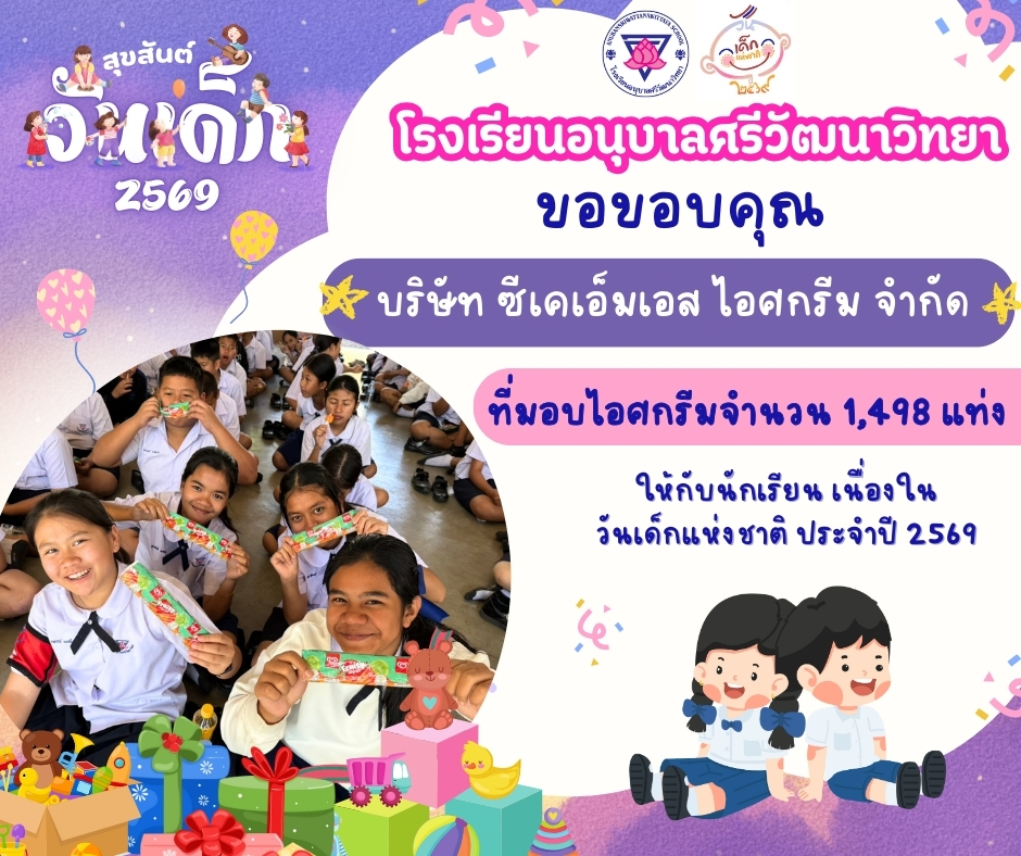 โรงเรียนอนุบาลศรีวัฒนาวิทยา ขอขอบพระคุณผู้มีจิตศรัทธาทุกท่านที่ร่วมบริจาคเงินและสิ่งของ สนับสนุนกิจกรรม วันเด็กแห่งชาติ 2569 มกราคม 10, 2026มกราคม 13, 2026 อสมากรณ์ บุญธรรม ข่าวประชาสัมพันธ์, งานสัมพันธ์ชุมชน ขอขอบพระคุณผู้มีจิตศรัทธาทุกท่านที่ร่วมบริจาคเงินและสิ่งของ สนับสนุนกิจกรรม วันเด็กแห่งชาติ 2569 ให้กับนักเรียนโรงเรียนอนุบาลศรีวัฒนาวิทยา รอยยิ้มของเด็ก ๆ วันนี้เกิดขึ้นได้เพราะน้ำใจของทุกท่าน ขอบพระคุณเป็นอย่างสูง อสมากรณ์ บุญธรรม