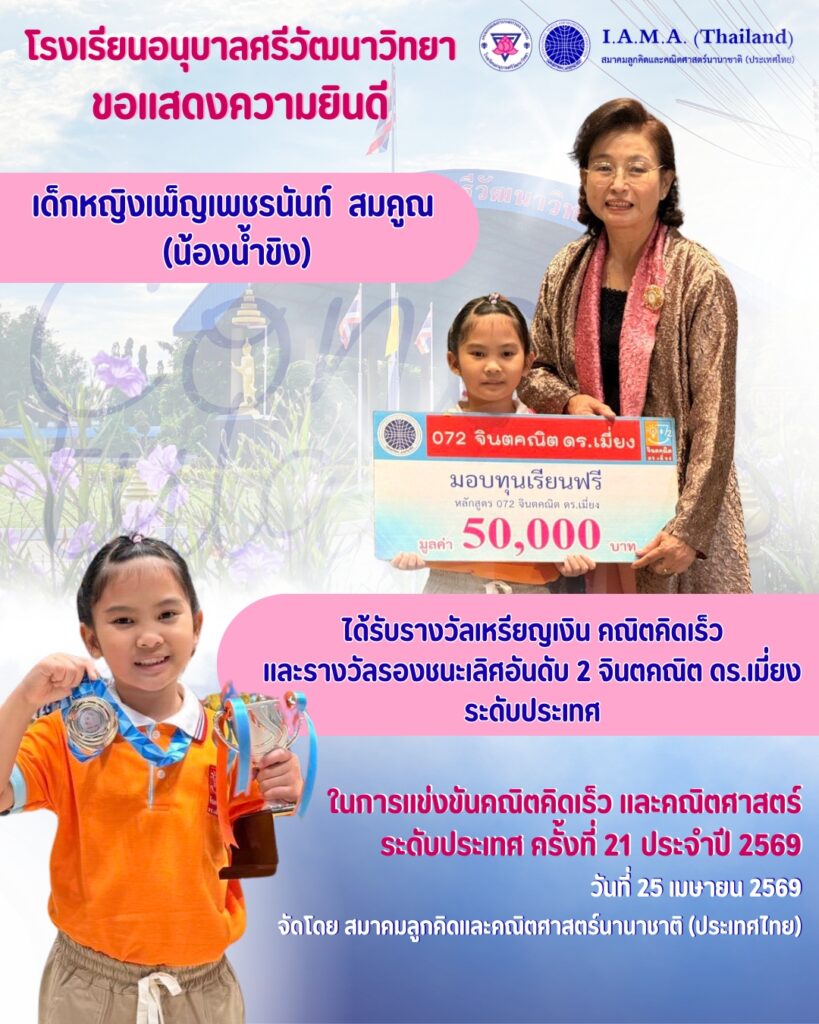 - ได้รับรางวัลเหรียญเงิน คณิตคิดเร็ว