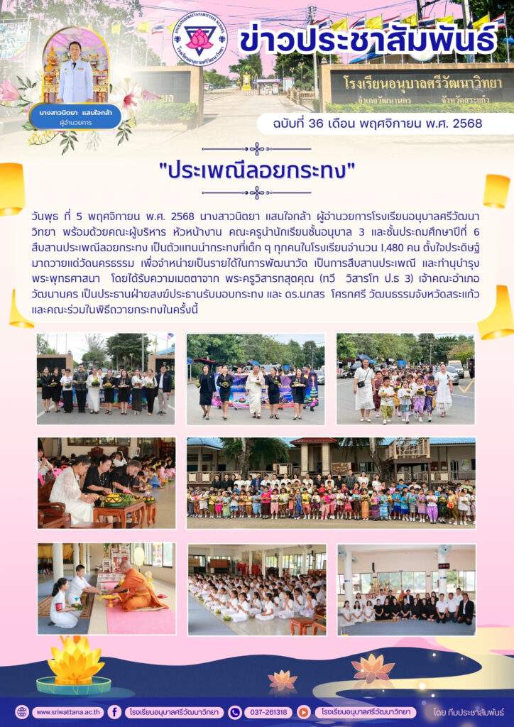 นักเรียนโรงเรียนอนุบาลศรีวัฒนาวิทยา ประดิษฐ์กระทงมาถวายแด่วัดนครธรรม เพื่อเป็นการสืบสานประเพณี และทำนุบำรุงพระพุทธศาสนา พฤศจิกายน 6, 2025พฤศจิกายน 6, 2025 อสมากรณ์ บุญธรรม เอกสารประชาสัมพันธ์ อสมากรณ์ บุญธรรม
