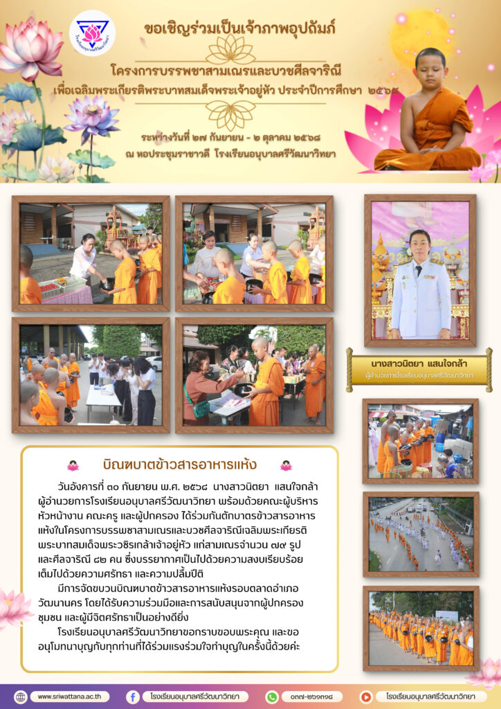 บิณฑบาตข้าวสารอาหารแห้งในโครงการบรรพชาสามเณรและบวชศีลจาริณี ปีการศึกษา 2568 แก่สามเณรจำนวน 79 รูป และศีลจาริณี 82 คน กันยายน 30, 2025กันยายน 30, 2025 อสมากรณ์ บุญธรรม เอกสารประชาสัมพันธ์ อสมากรณ์ บุญธรรม